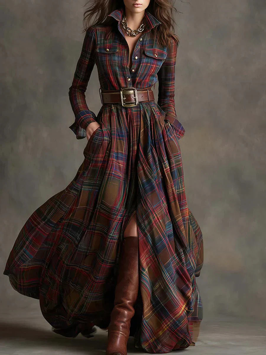 Descoperiți din nou farmecul clasic într-o interpretare modernă. Rochia Sara în stil retro cu carouri îmbină precizia croitoriei tradiționale cu farmecul relaxat al modei contemporane. Gulerul elegant de tip cămașă, nasturii pe întreaga lungime și fusta liberă, fluidă creează o mișcare care subliniază natural silueta feminină.