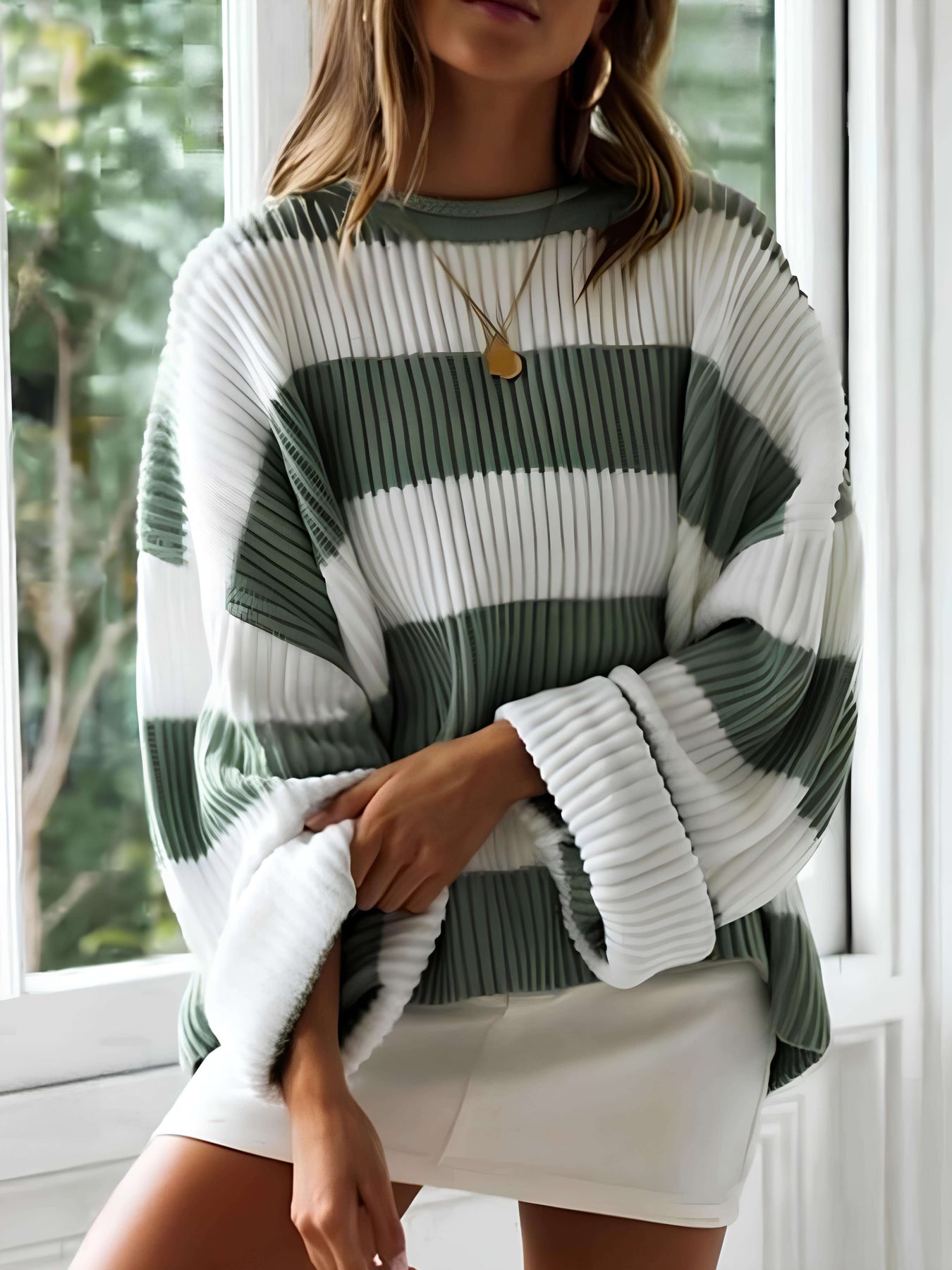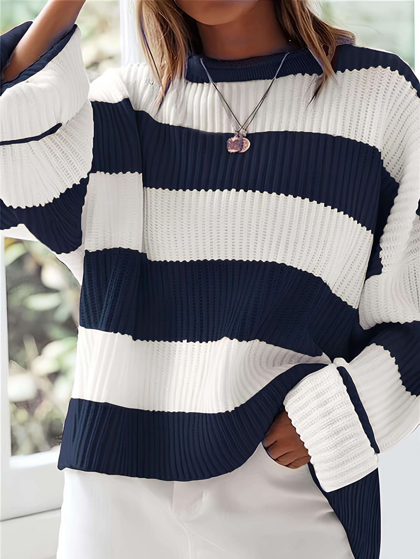Permite-ți să fii învăluită de o senzație de căldură și simplitate. Dafne este puloverul cu dungi care combină designul modern, liniile clasice și o moliciune care te însoțește pe parcursul întregii zile.